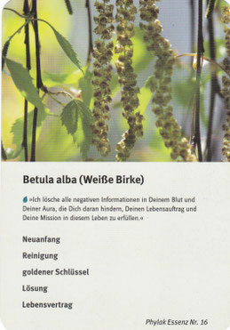 Die Pflanzenkarte Betula alba ist aus dem Kartenset: "Energetische Spagyrik" von Roland Lackner